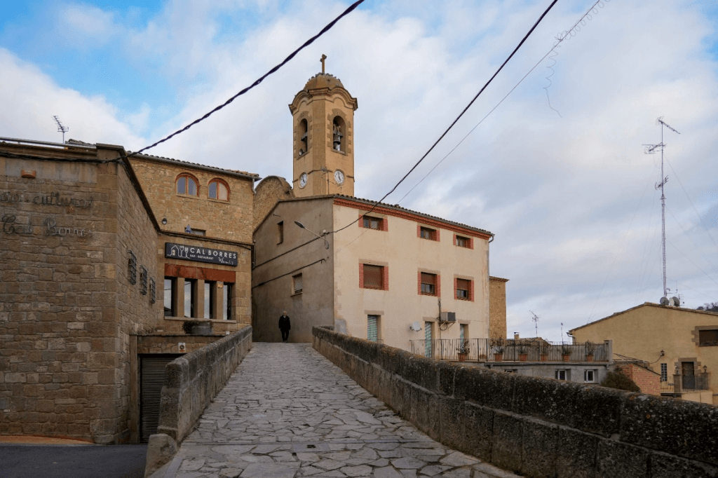 La iglesia es moderna, sense merit ni pretensió, situada en el lloc de la antiga, de la que’n quedan sols fragments en la sagristia. La parròquia es de nova creació, havent sigut fins fa poc, sufraganea de la de Llovera. Son terme s’aveïna al Nord ab el d’aquella parròquia; a ponent ab la de Pinell, (Itinerari n.° 34); a mitjorn ab les de Lloverola y Vallferosa (Itin. n.° 27) y a llevant ab les de Llanera y Torradenagó (Itin. n° 28 y Itin. n° 13).