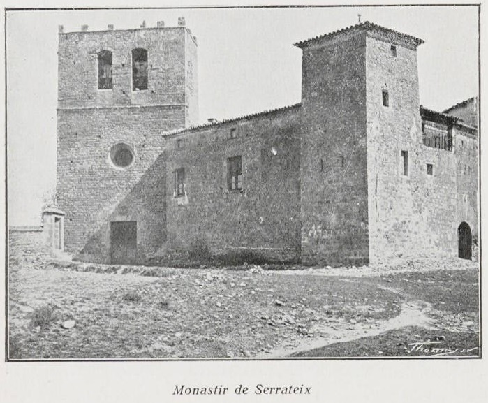 El bisbe de Solsona, Doctor Riu, de bona memòria, restaurador del cenobi de Cellers (Itinerari n.° 19) havia concebut el plau de restauració de la abadia de Serrateix, ab el propròsit de constituiria en mansió bisbal d’estiu.