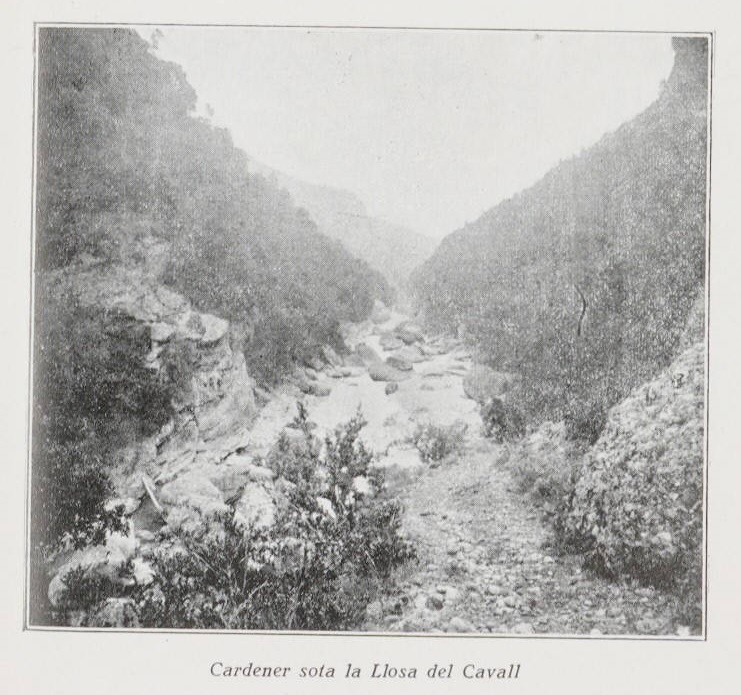 Es una verdadera llàstima que no’s pugui seguir d’aprop pel peu de l’aigua el curs del Cardener desde’l Pas del Diable a la Llosa de Cavall, pera fruir mellor de les singulars belleses del engorjat ab ses formidables revoltes entre’ls esperons de penyes formant farrenys bastions, ab les continuades gorgues de colorit variat segons sa fondaria o l’entonació de les roques que les vigilen, els espadats enèrgics y’ls cops de vista que’Is variats accidents promouen. Com que’l riu tan aviat se refrega pels balços y aspres bancals de la vora dreta com pels de la marjada esquerra, caldria fer obres de desmont en les roques y penyals y alguns murs de defensa. Això s’ha fet en el Pireneu francès aon s’han construit hermosos camins forestals que vorejen els pregons fondals dels engorjats. Un bon camí de ferradura ben fonamentat y a voltes penjat ompliria per are aquest malaguanyat buit.