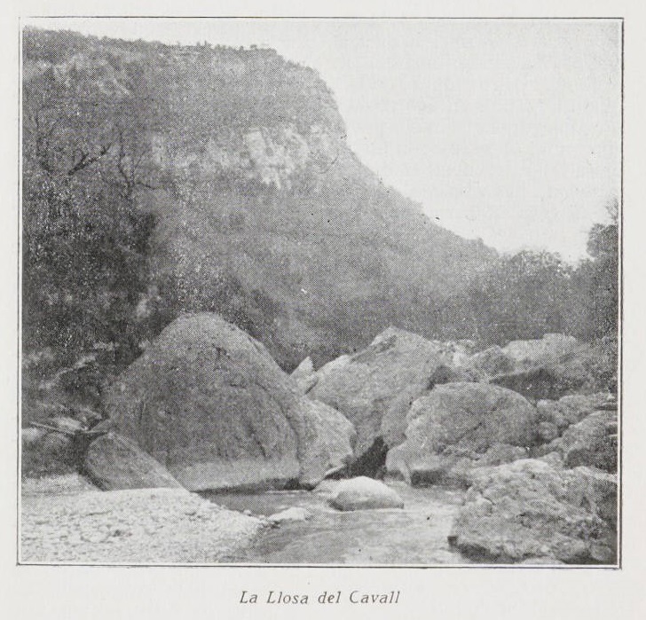 Seguint el camí la marjada dreta del riu y per damunt d’ella, entra promptarnent, dominant la, en la magnífica olla de La Llosa del Cavall, que produeix un preciós efecte (Vegis itin. anterior).