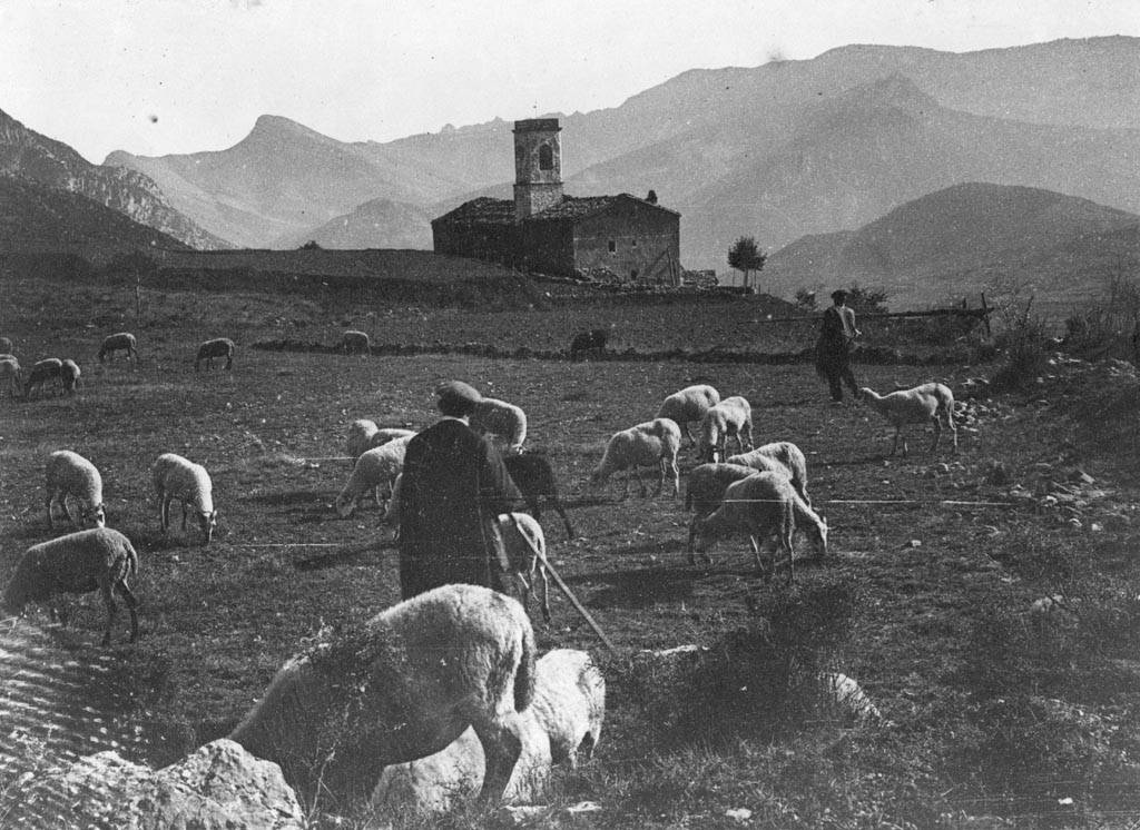 Sant Julià de Fréixens, en primer terme ramat i pastors – Vallcebre – 1926 – AFCEC EMC Antoni Gallardo i Garriga