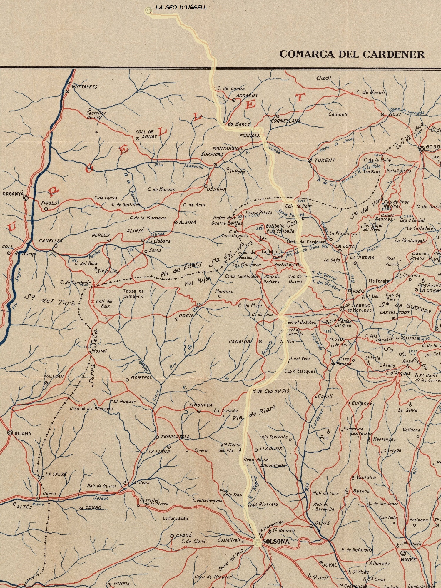 | Aquest itinerari, “De Solsona a La Seo, per Port del Comte“, és l’“antic camí ral de ferradura de gran importància en anteriors centúries. Es trajecte molt interessant y d’alegre vista per les altes serres que s’atravessen y les belles valls que s’entrecreuen. La tirada es molt llarga. Pot repartir-se en dos o més jornades, baixant des de coll de Jou a Sant Llorenç y remuntant el Cardener o baixant a Tuxent des de’l Port del Comte seguint /’itinerari anterior. Pot fer-se també nit a Fórnols. Quan el trànsit era gros y’s feia ab matxos de bast, la jornada’s repartia fent-se nit en els hostals del camí“. Es pot fer en 14 hores 30 minuts. Els indrets per on passa l’itinerari són coneguts, ben identificats i es poden trobar als mapes. Els camins de bast han passat a ser carreteres. La carretera actual de Solsona a la Seu d’Urgell pel Port del Comte i Coll de Port coincideix força amb aquest itinerari. Es pot fer a peu, en bicicleta o en cotxe. És una llarga via de muntanya amb molt desnivell, si es vol fer a peu o bicicleta, s’ha de preparar amb temps, anar amb roba apropiada i amb l’avituallament adequat, no s’hi val improvisar. Tal com es diu a la presentació, és una excursió molt interessant entre dues comarques properes però mal comunicades, una gran oportunitat per gaudir de la muntanya i dels pobles per on passava l’antic camí ral entre Solsona i la Seu d’Urgell. |
