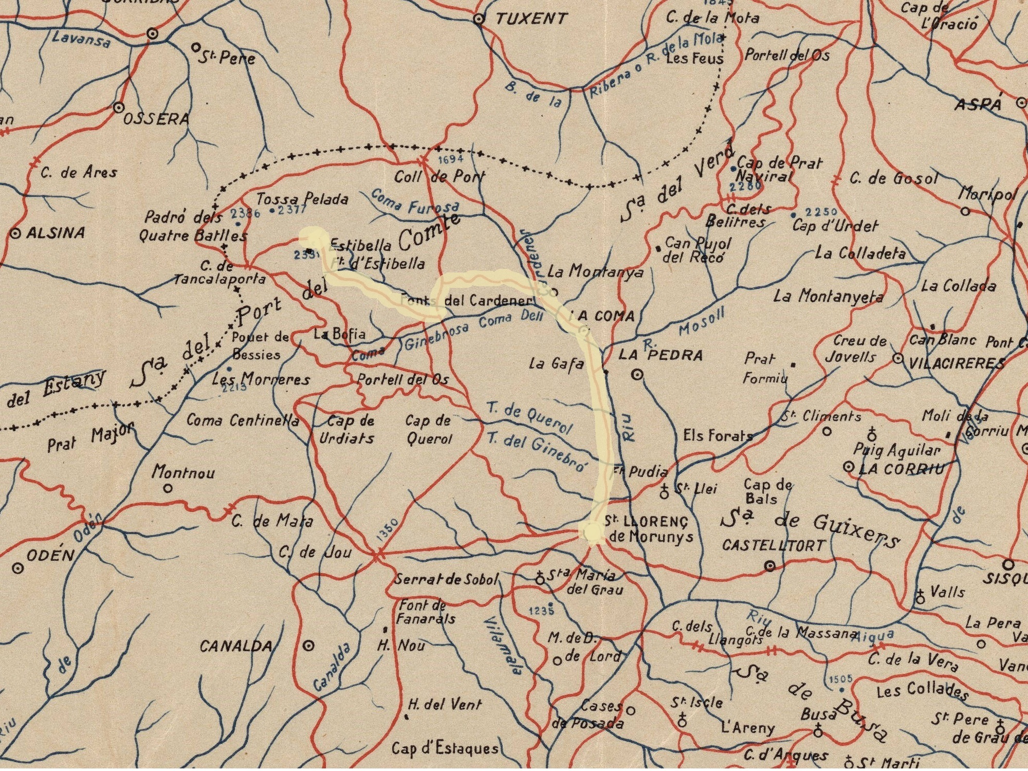 | Aquest itinerari, “De Sant Llorenç dels Piteus al cim d’Estibella per La Coma“, és un “itinerari de parió interès als que recorren aquesta bella montanya“. Es pot fer en 4 hores. Aquest és el temps optimista per anar-hi, cal pensar que s’ha de tornar, be sigui per mateix itinerari o, millor, per algun dels altres que uneixen aquests dos punt per fer una ruta circular. Els indrets per on passa l’itinerari són coneguts, ben identificats i es poden trobar als mapes, considerant que els camins han canviat interferits per la construcció de l’estació d’esquí del Port del Comte. És un itinerari de muntanya amb molt desnivell, si es vol fer tot a peu, s’ha de preparar amb temps, anar amb roba apropiada i amb l’avituallament adequat, no s’hi val improvisar. És una excursió molts interessant, una gran oportunitat per gaudir de Sant Llorenç de Morunys, la Coma, les fonts del Cardener i de la serra del Port del Comte. |