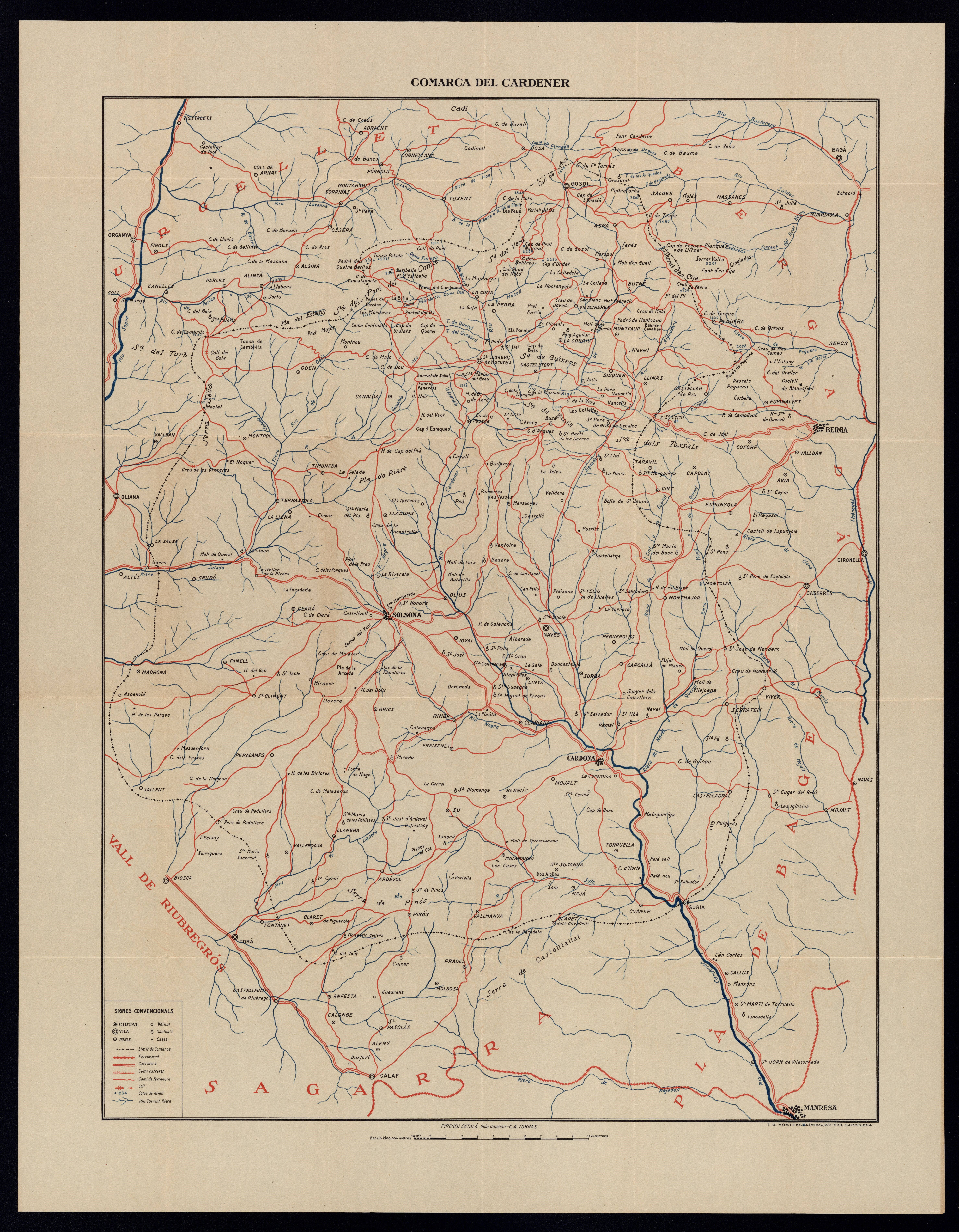 | Capítol “Comarca del Cardener“, de la guia “TORRAS, Cèsar August (1922). Pirineu Català. Comarca del Cardener. Ed. Torras Hostench“, de la pàgina 1 a la 23. |