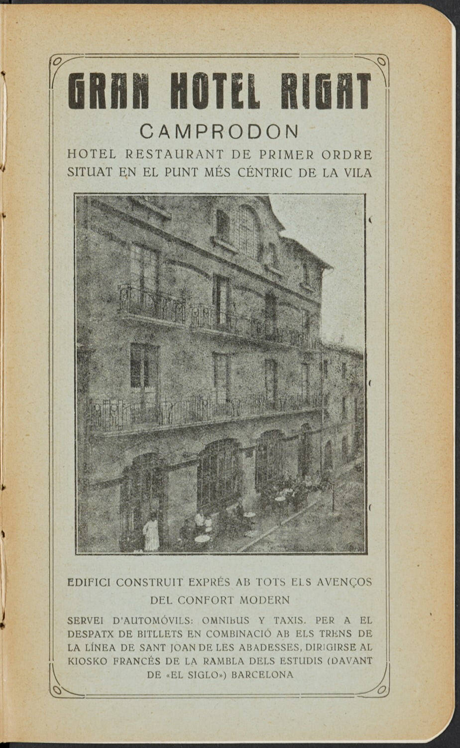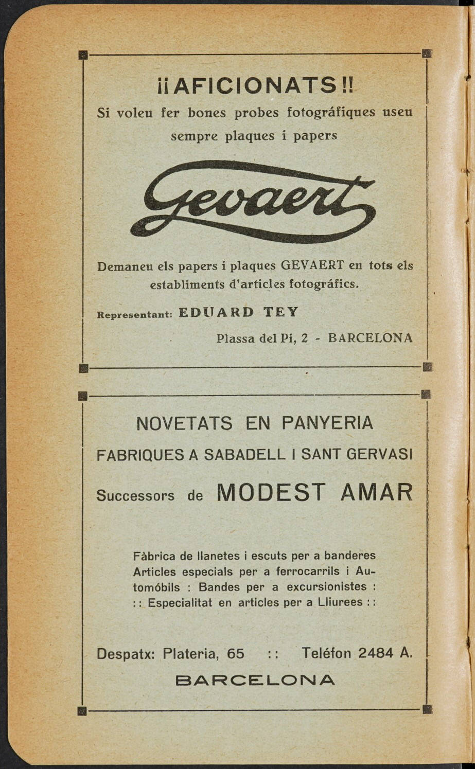 Com que el públic era sobretot urbà, abunden també els anuncis d’empreses relacionades amb turisme (agències de viatge, fotografia, bancs, begudes…).