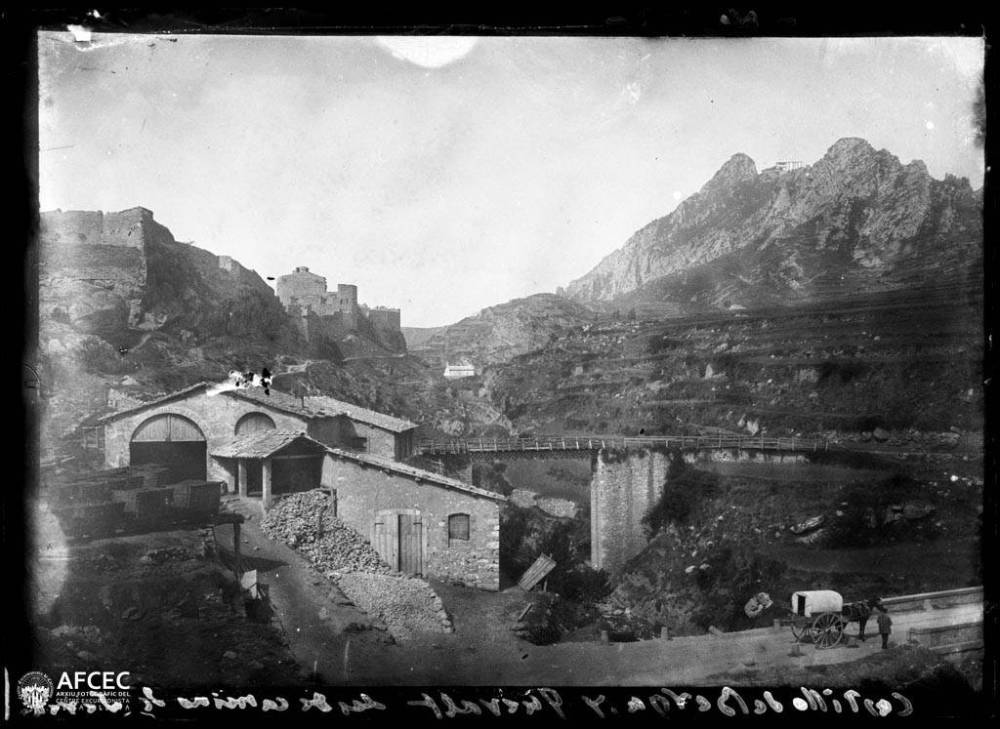 Castell de Berga i el santuari de la Mare de Déu de Queralt, vista des del camí – 1900 – AFCEC Lluís Marià Vidal i Carreras