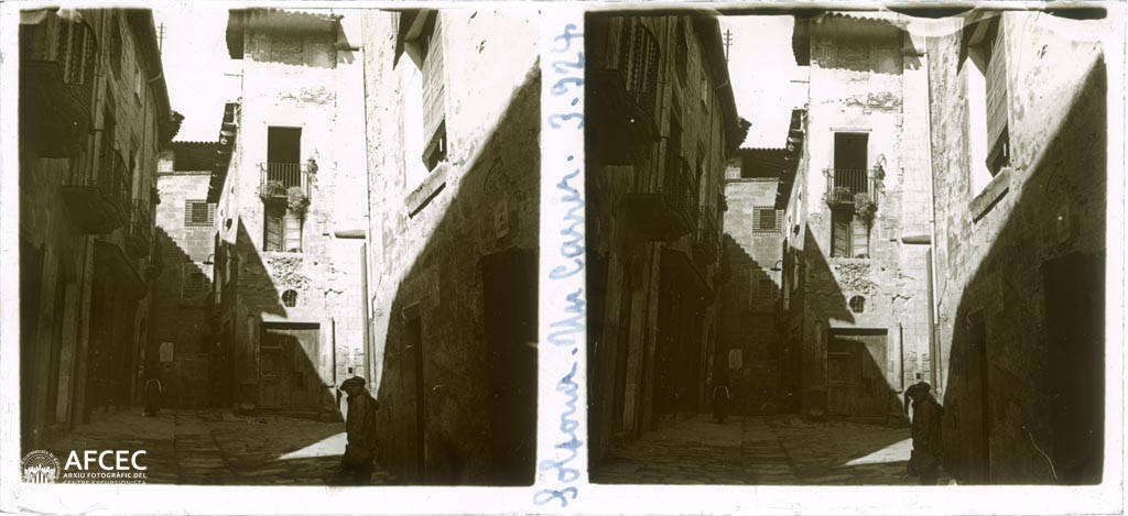 Un concorregut carrer de Solsona amb el campanar del castell al fons – 1924-03-05 – AFCEC Manuel Genovart i Boixet