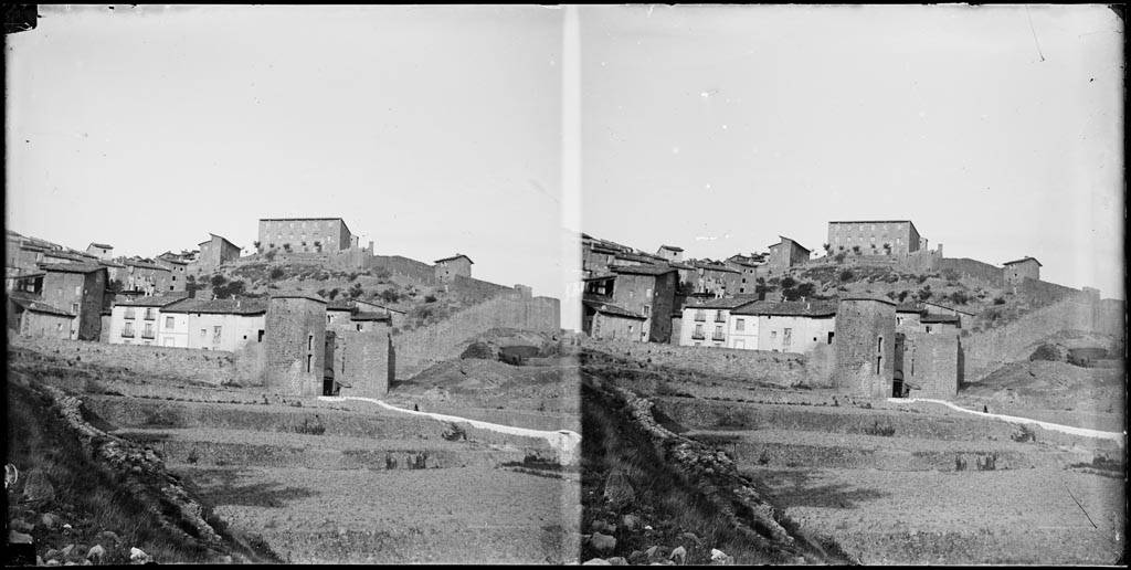 Vista parcial de Cardona amb la muralla i un portal d’entrada – ca 1890 – AFCEC – Frederic Bordas i Altarriba