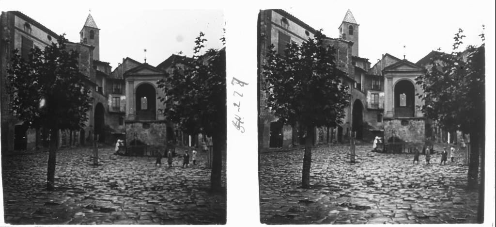 Plaça de Cardona amb nens i més gent i al fons el portal de l’església de Sant Miquel de Cardona – 1917-12-09 – AFCEC Arnau Izard i Llonch