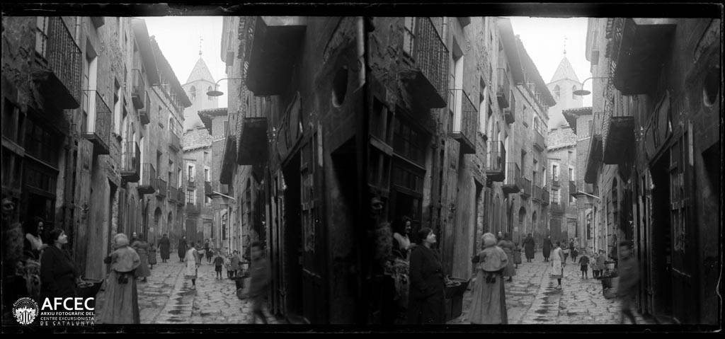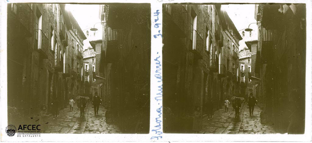 Un concorregut carrer de Solsona amb el campanar del castell al fons – 1924-03-05 – AFCEC Manuel Genovart i Boixet