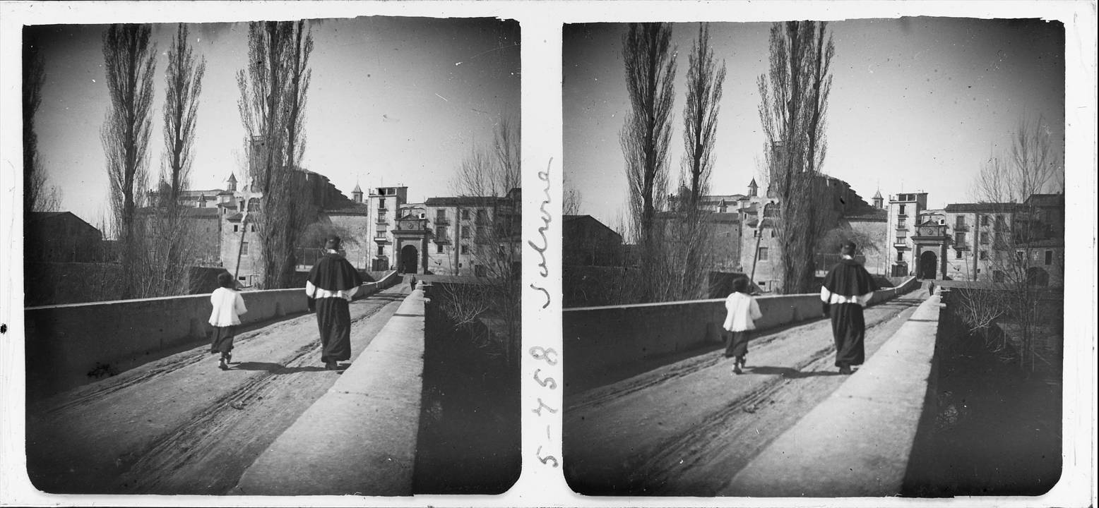 Pont amb capellà i escolà portant una creu cap al portal de Pont – Solsona – 1924 – FFS Josep Salvany i Blanch
