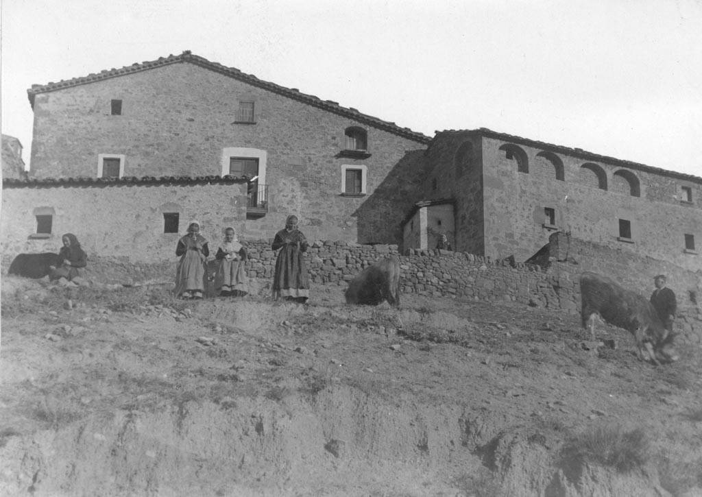 Dones amb un ramat de bous i vaques davant d’una masia de Solsona – Entre 1910 i 1936 – AFCEC EMC – Lluís Vila i d’Abadal
