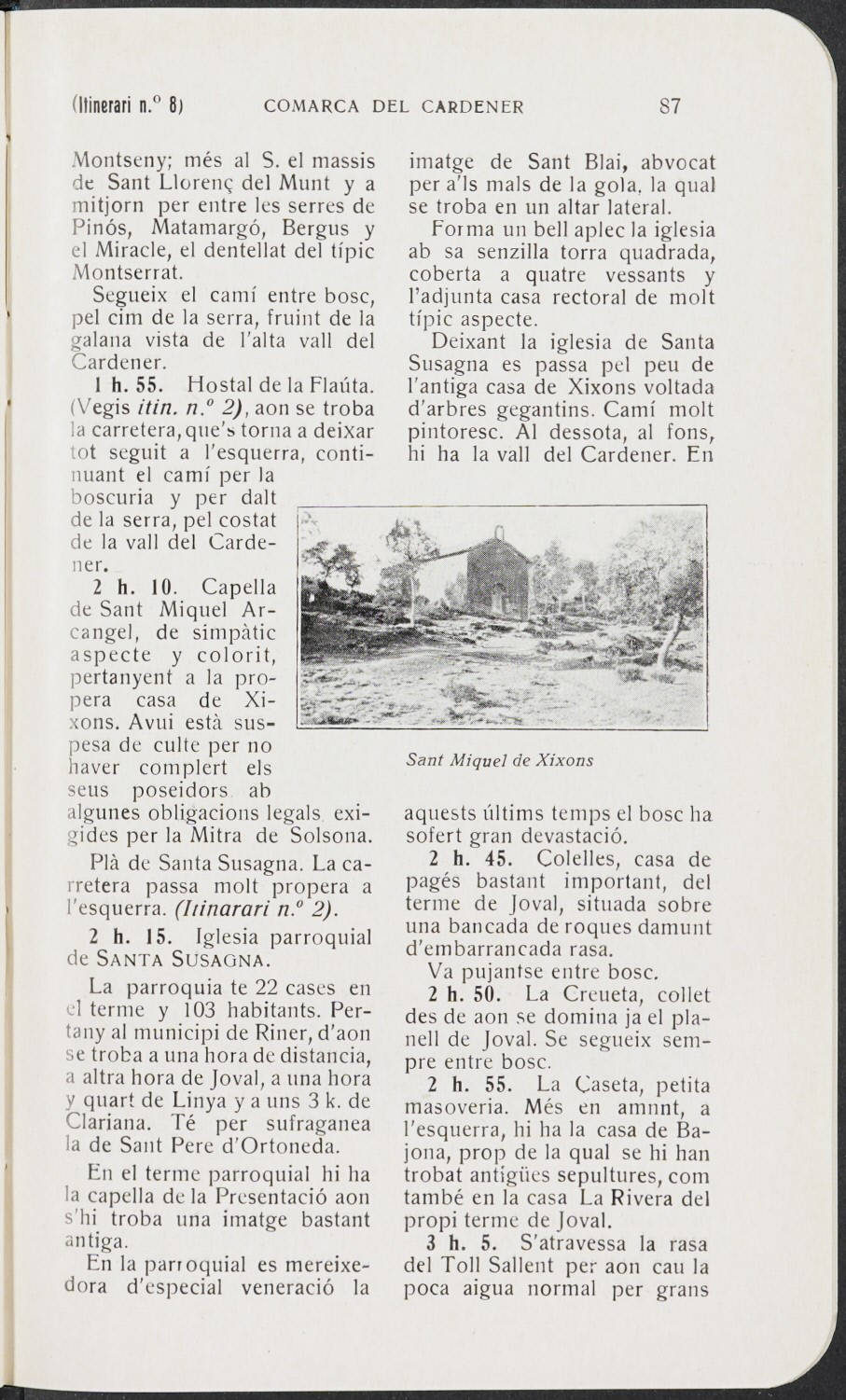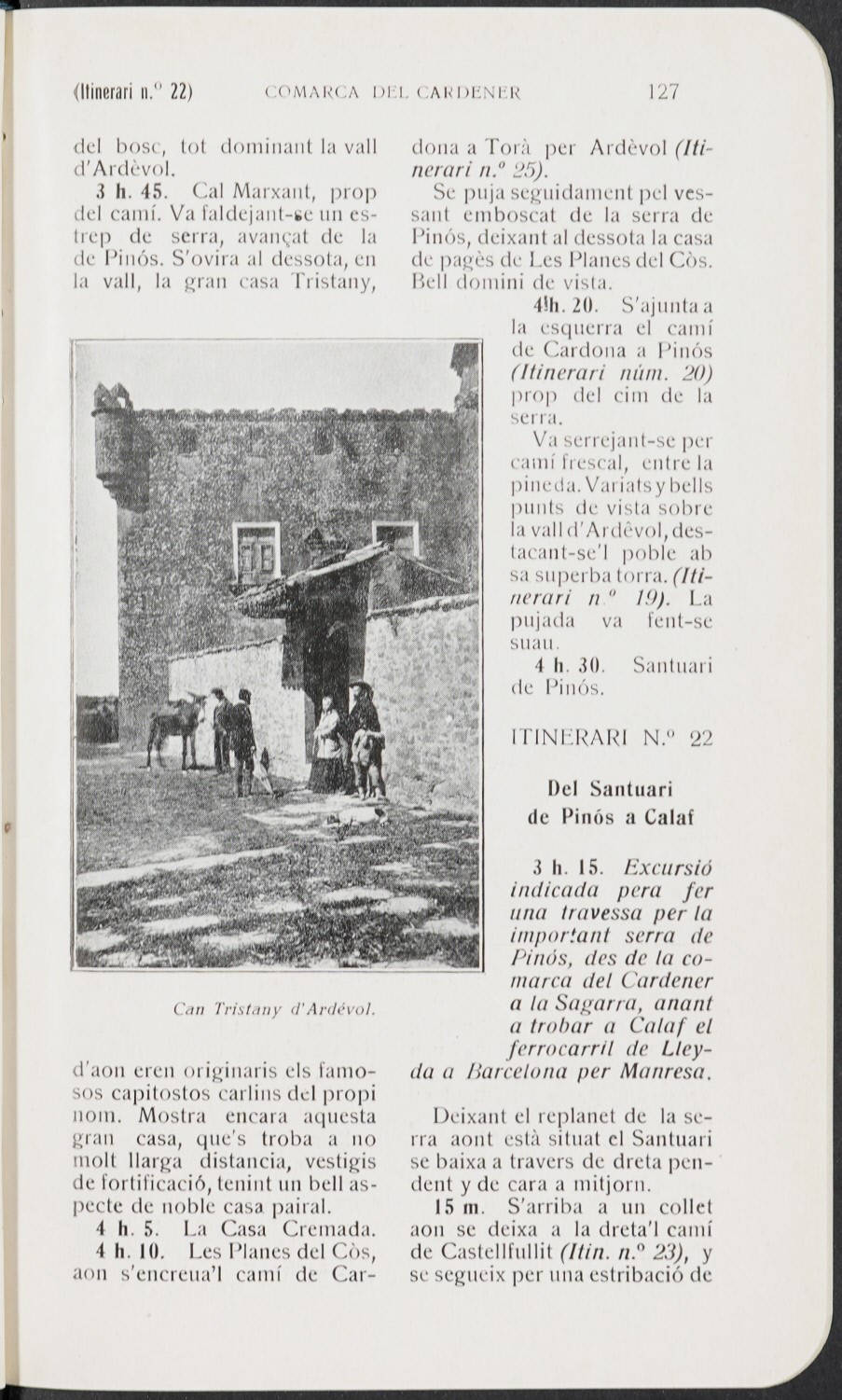 | Gravats del capítol II Comarca baixa.- Costat de mig-jorn de la “Comarca del Cardener“, la guia de “TORRAS, Cesar August (1922). Pirineu Català. Comarca del Cardener. Ed. Torras Hostench“. |